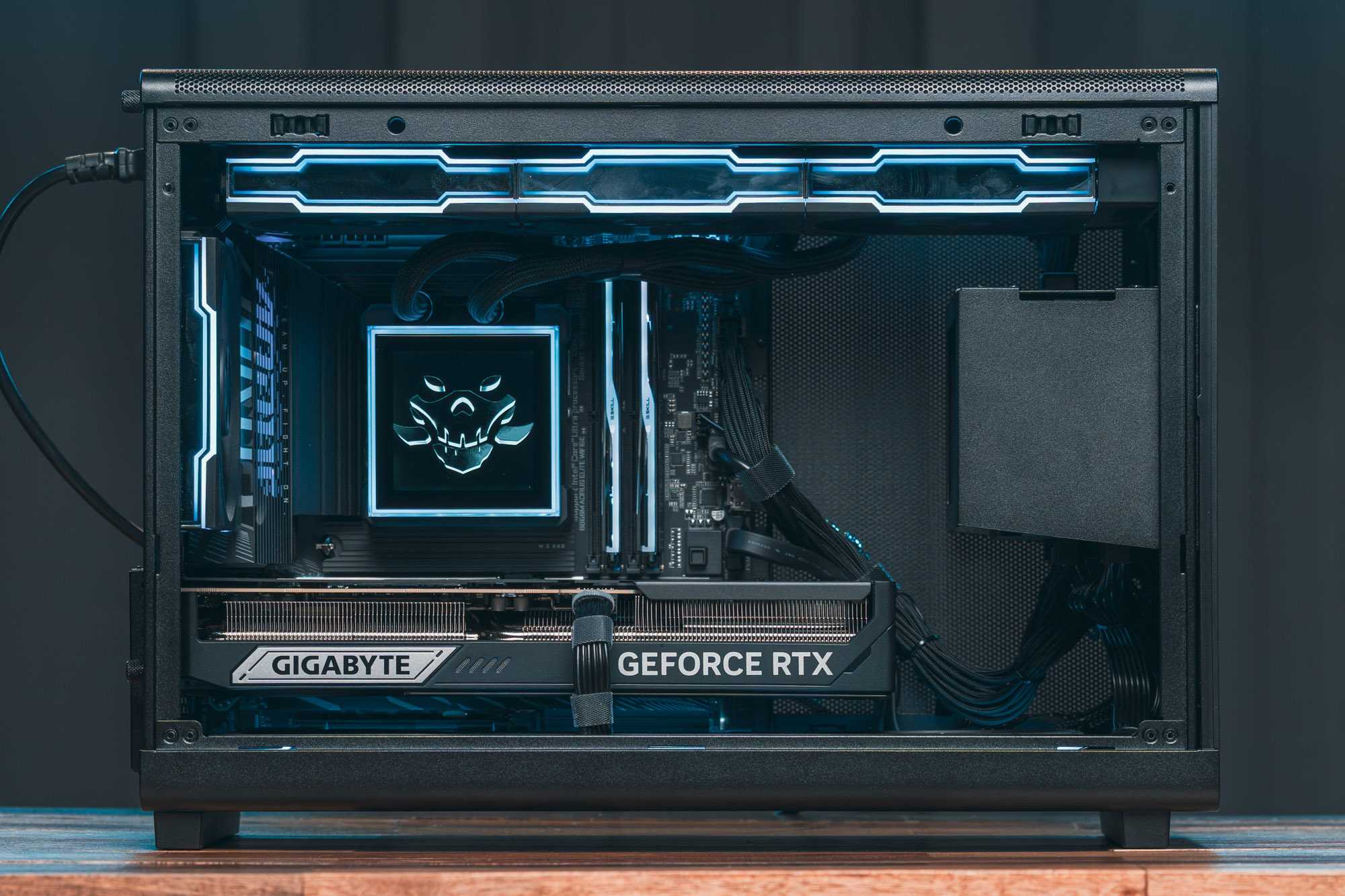 Smukła konstrukcja mATX łączy premium materiały z przemyślanym layoutem, oferując miejsce na pełnowymiarową kartę graficzną i rozbudowane chłodzenie 360 mm i potężne procesory